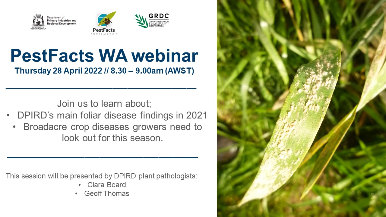 Dpird Broadacre Wa Grains Livestock On Twitter 30min Pestfactswa Plant Disease Webinar On Thursday 28 April At 8 30am Awst Covering Dpird S Main Foliar Disease Findings In 2021 And What Broadacre